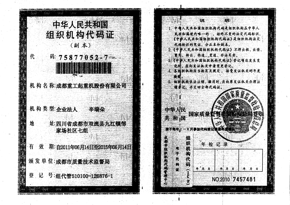 成都重工起重機股份有限公司©2012 版權所有 地址:成都市雙流西南航空港經濟開發區空港三路903號